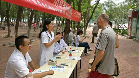 6月28日为国际癫痫关爱日,今年的宣传主题是“关注校园内的癫痫患者”,28日中午男同性恋av 的研究生与青大附院神经内科的专家们联合,师生共同在仁园餐厅门口开展宣传与义诊活动。此次活动吸引了不少同学驻足观看,有的同学还主动过来领取宣传单甚至坐下和专家交谈。另外还有外国友人被此活动吸引,坐下与专家交流关于癫痫病的防治和病因等知识。专家们不仅热心为咨询人员解答有关问题,还生动展示了癫痫病发时抽搐和面部反映,并告诉大家相应的应对措施。