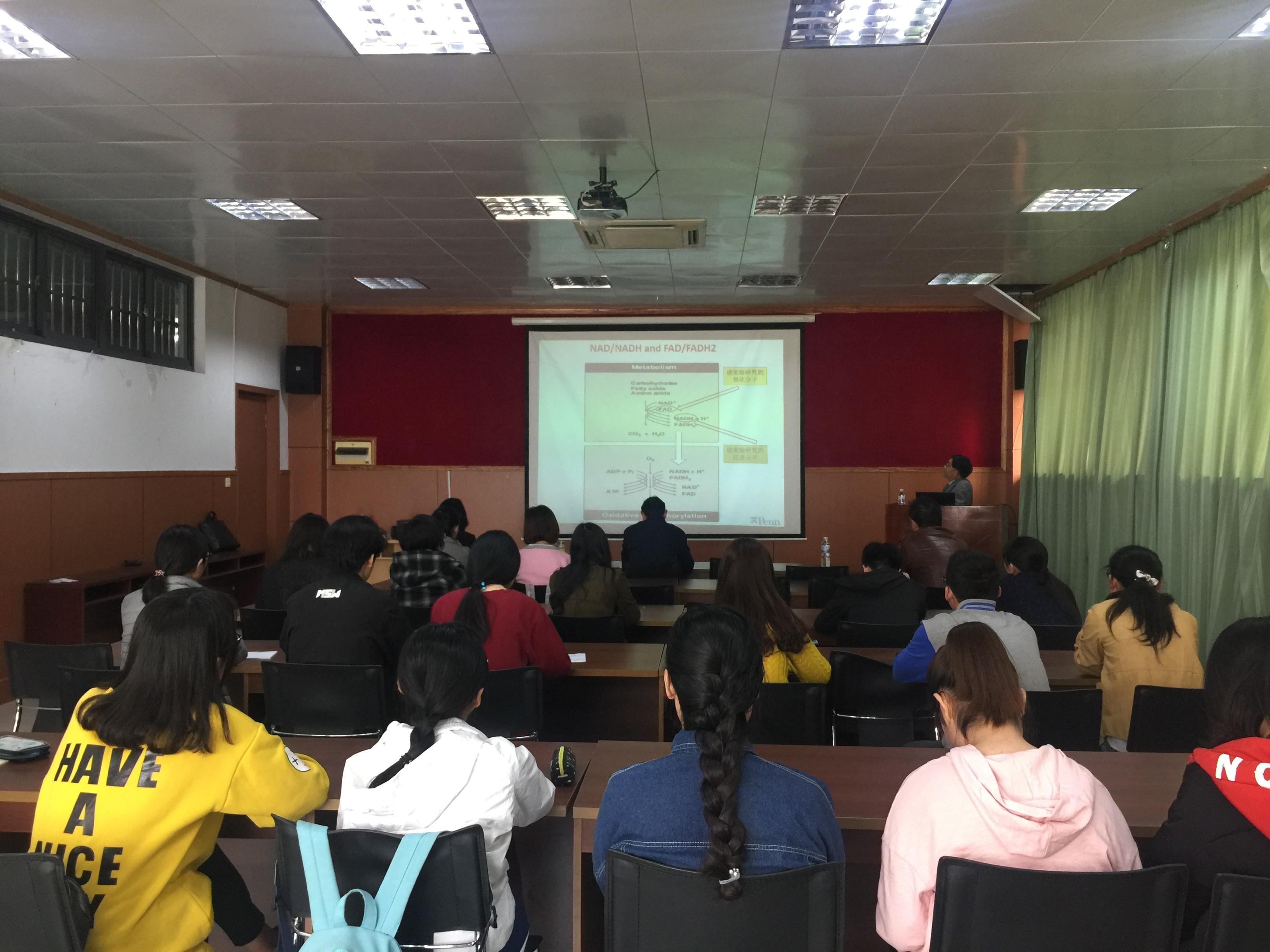 此次学术报告,林教授为大家介绍了其课题组最新的关于肿瘤研究的最新进展和研究经验。把乳腺癌细胞MDA-MB-231诱导的鼠皮下肿瘤中不同氧化还原态区域的细胞分割出来,按其氧化态分子(Fp,flavoproteins)、还原态分子(NADH)和FpR(Fp/Fp+NADH)的高低分为高、中、低三组,用RNA序列分析方法对不同氧化还原态组织的基因表达作了对比研究,发现不同氧化还原态具有特异的基因表达。以上氧化还原态特异的基因表达和代谢途径的结果说明氧化还原态可作为乳腺癌增殖、转移性的生物学指标。报告结束后,多位老师和同学积极的进行提问、交流和讨论,学术氛围良好。