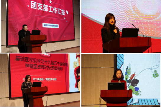 在浩园医学教育综合楼学术报告厅举办了十九届五中全会精神学习会暨团支部“对标定级”答辩会。学院党委副书记刘学、辅导员谭雪梅及学院全体团学干部和普通学生代表参加了此次活动。