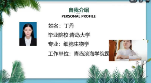 细胞生物学专业、目前在滨海学院做教师的丁丹同学,导师王建勋教授,在读研期间曾发表两篇SCI论文。丁丹同学从自己的求职经历、就业选择、求职准备、面试经验等方面,为大家详细介绍了如何制作简历、面试中注意的细节以及自己当前的工作状况和心得感悟。她说“要从个人兴趣、个人资源、个人目标出发, 充分了解自己,知道自己想干什么,能干什么。摆正心态,不能碍于面子,也不能着急,要以恰当的方式维护个人权益”。