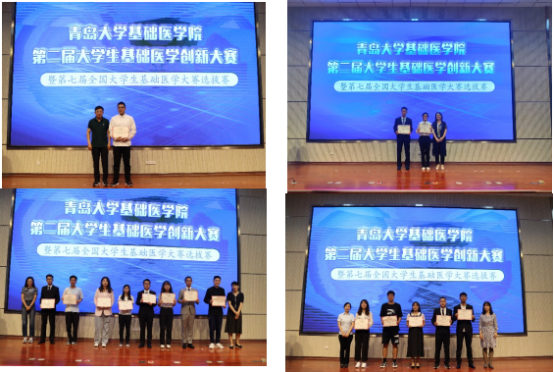 本次大赛分为基础医学创新研究和基础医学实验设计两个论坛,共有34支队伍参赛。基础医学创新研究论坛由闫志勇副教授、王成勤副教授、周祺惠副教授、薛美兰副教授、李尚勇副教授担任评委;实验设计组由李冰教授、于涛副教授、施春英副教授、杨丽娜副教授、何宁宁副教授、李霄霞博士、赵文文博士担任评委。参赛队伍依次进行了汇报和答辩,评委老师针对汇报内容进行了点评和针对性的指导。大赛共评选出一等奖三名、二等奖三名、三等奖七名和优胜奖若干,并推选出六组选手代表大学参加第七届全国大学生基础医学创新论坛暨实验设计大赛。