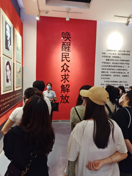 学习实践团队的第二站是天福山起义纪念馆。此站主题为“天福山上举义旗”。1937年 12月 24日,日寇的铁蹄尚未踏上胶东大地,中共胶东特委就率先在天福山举行了抗日武装起义,成立了山东人民抗日救国军第三军,打响了胶东抗战第一枪,成为红色胶东的源头。