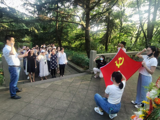 在天福山革命起义纪念碑前,教工二支部书记狄国虎同志领誓,大家重温入党誓词,庄严宣誓:“我志愿加入中国共产党,拥护党的纲领,遵守党的章程,履行党员义务,执行党的决定,严守党的纪律,保守党的秘密,对党忠诚,积极工作,为共产主义奋斗终身,随时准备为党和人民牺牲一切,永不叛党。”