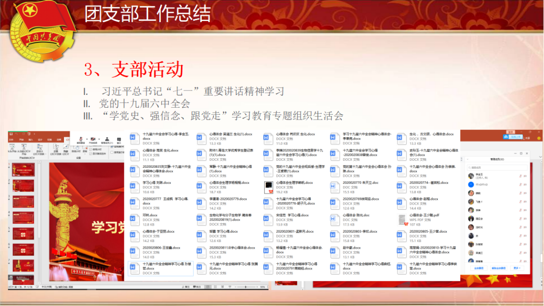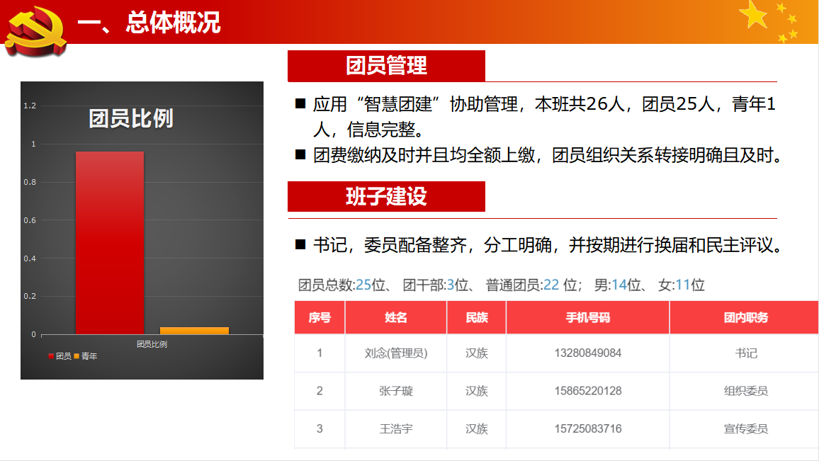 各团支部集中进行了汇报答辩,汇报内容包括班子建设、团员管理、组织生活、制度落实、作用发挥和自评结果等方面。本次团支部自评共分为5个等级,分别为五星级团支部、四星级团支部、三星级团支部、后进团支部和软弱涣散团支部。答辩期间,团支书们热情饱满,向评审团介绍支部基本情况、工作总结及展望等。