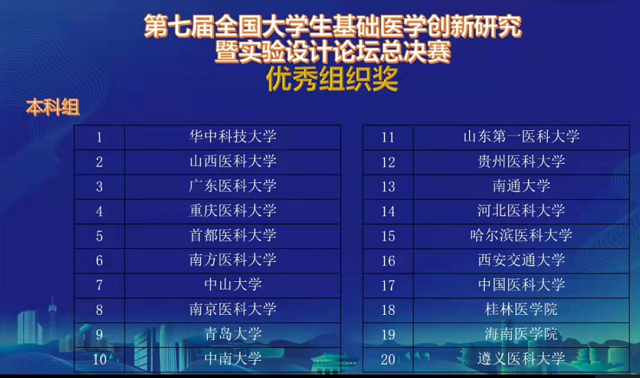 第七届全国大学生基础医学创新论坛暨实验设计大赛东部赛区获奖名单
