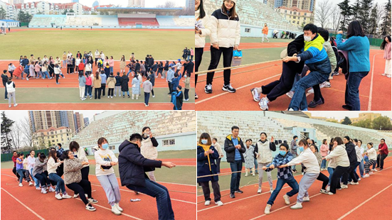 活动之初,约140名同学被合理分配到10个队伍中,各个队伍内部推选小队长并共同给队伍取名。接着,拔河、跳大绳、两人三足和抢凳子项目有序开展。