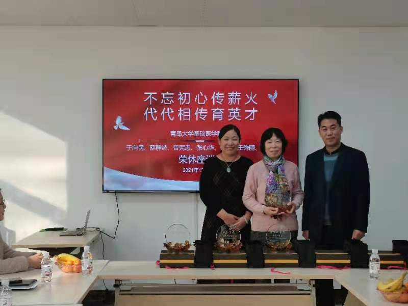 医学教育发展的历程,爱岗敬业、教书育人、默默奉献三尺讲台,为学校的建设和发展做出了不可磨灭的贡献,老师们严谨治学、淡泊名利,无私奉献的精神正是“青医风骨”的良好体现。他真诚地希望荣休老师“退而不休”,常回“家”看看,为学院工作多提宝贵建议,一如既往的关心学校的发展。各位退休教师畅所欲言,回顾了青医的发展与变迁,以及教学历程中点点滴滴的美好时光,感谢学院与部门的多年支持,为青医平台的不断提升而倍感自豪。参会部门负责人和年轻教师相继发言,感谢老教师们几十年来耕耘不辍,使青医人优良传统的火炬代代传承,培育了一代代年轻教师和青医学子,年轻教师们表示,一定努力进取,将青医精神发扬光大,不负所托。