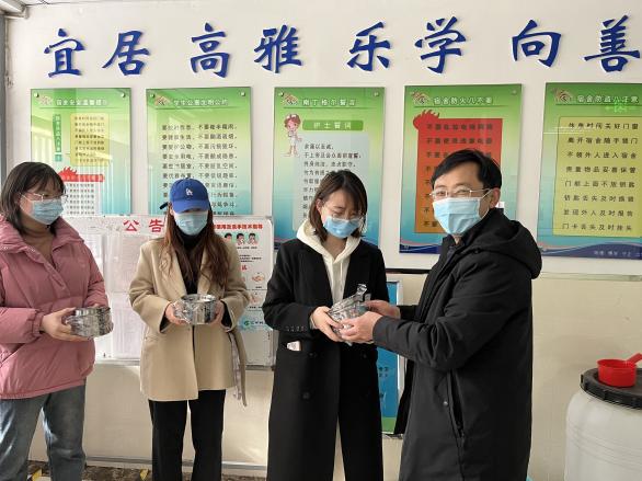 图2:刘学书记正在给同学们发放饭碗