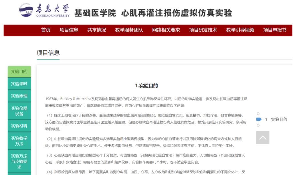 心肌再灌注损伤虚拟仿真项目进行实验操作研究。
