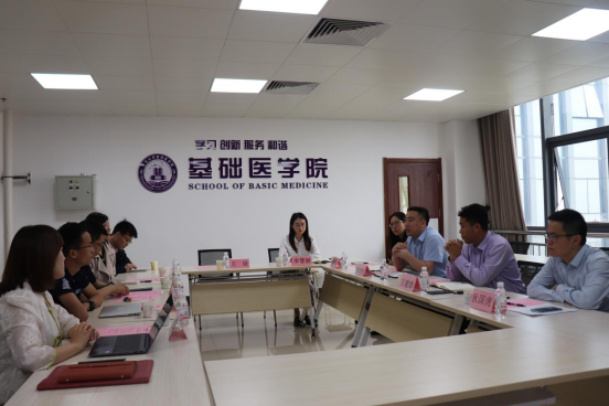 王建勋院长首先对范广益研究员一行的来访表示热烈欢迎。他从学院发展历史、师资队伍、教学成果、学科方向、未来规划等方面系统介绍了学院的发展情况。副院长李尚勇介绍了学院华大基因创新班的办学历史、办学成绩和办学计划。