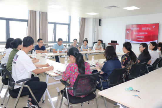 教师座谈会。党委书记丛红群、院长王建勋、党委副书记章敏、副院长李尚勇、院长助理徐华敏、狄国虎、学院教师代表及新入职教师参会。