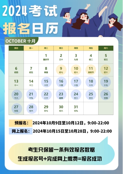 网上报名时间:2024年10月15日至10月28日,每天9:00—22:00