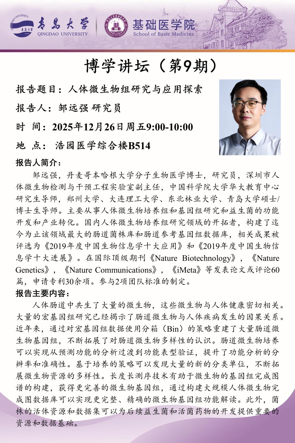 本场讲座将采取线下报告的形式,地点在浩园医学综合大楼B座810、514会议室。