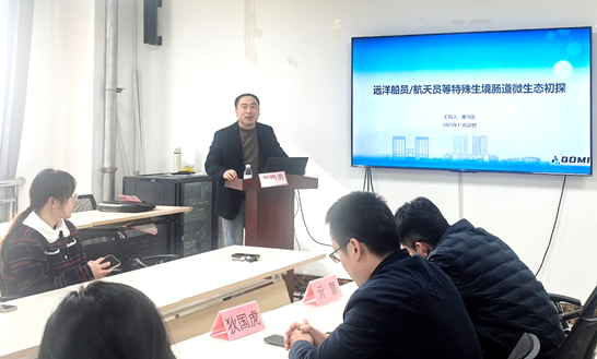 本次讲座以“远洋船员/航天员等特殊生境肠道微生态”为主题,李尚勇副教授结合自身课题组多年研究成果,围绕特殊环境人群的健康保障问题展开深入分享。他指出,远洋船员、航天员等群体长期处于失重、密闭、作息不规律等特殊生存环境中,其饮食结构变化、应激反应等因素易引发肠道微生态失衡,而这种失衡又与骨质流失、晕动症等典型职业健康问题存在密切关联,这一研究方向兼具理论深度与实践意义。