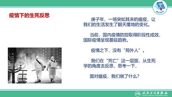 庚子年,一场突如其来的瘟疫,让我们的生活发生了翻天覆地的变化。当前,国内疫情防控取得阶段性成效,国际疫情呈现蔓延趋势。请结合医学生这一特殊的身份,在“死亡”这一层面,从生死学的角度去反思死亡教育的意义。