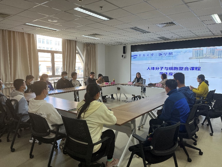医学部2021级临床医学(5+3)专业培养方案中开设实施的基础医学整合课程之一,由医学细胞生物学、分子生物学与生物化学、医学遗传学等内容组合而成。此次座谈会的召开对进一步完善整合课程教学设计、促进学生课程学习起到了很重要的作用,也为整合课程下一阶段的运行提供了一定的参考建议。