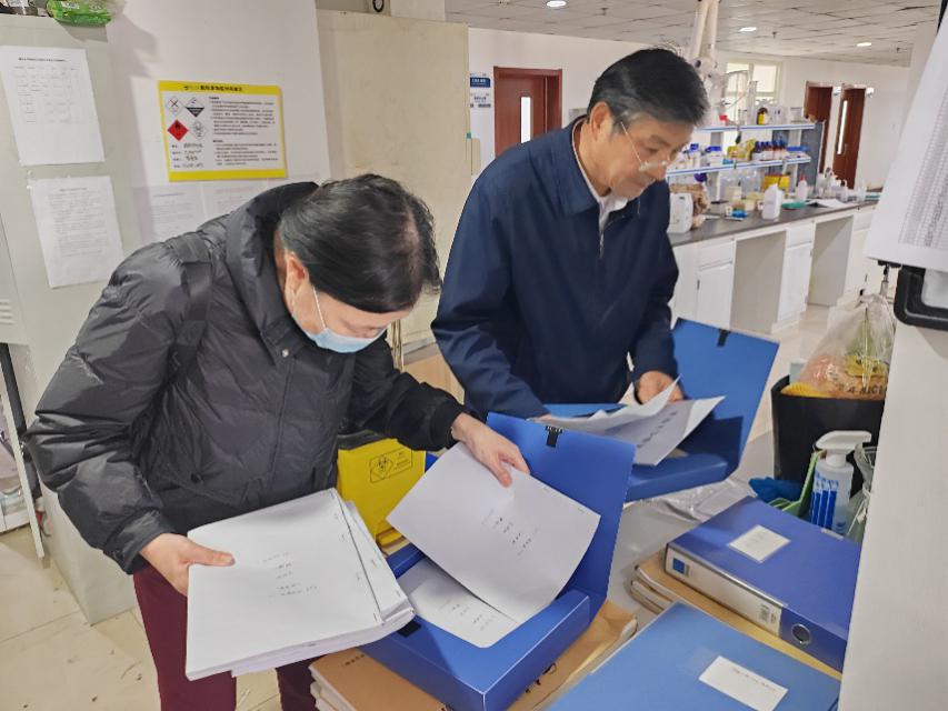 副院长李尚勇,学院督学夏玉军教授、谷方教授和葛银林教授,教科办刘春艳,针对各教研室开展教学文档检查工作。
