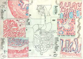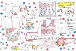 作品说明:消化系统由消化道和消化腺两部分组成。该绘图主要对肠、胃、肝的显微结构和胰腺进行详细展示,直观地展示帮助消化吸收的结构。通过对消化系统部分结构的微观展示,以及较为卡通形象的运用,提高公众尤其是孩童对消化系统的认识,了解消化系统的功能和结构,同时还能提高人们对消化方面疾病的关注。 |