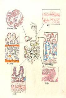 作品说明:消化系统作为人体八大系统之一,肩负着摄取、输送、消化食物以及吸收营养、排泄废物的重任,为机体提供所需的物质和能量。此图采用彩铅手绘技法,详细展示了消化系统主要消化管与消化腺的显微结构,包括食管、胃底腺黏膜层、肝小叶及门管区、十二指肠、空肠和结肠六大部分。图中所绘以“精准”为首要原则,旨在发挥科普和示教的作用。 |