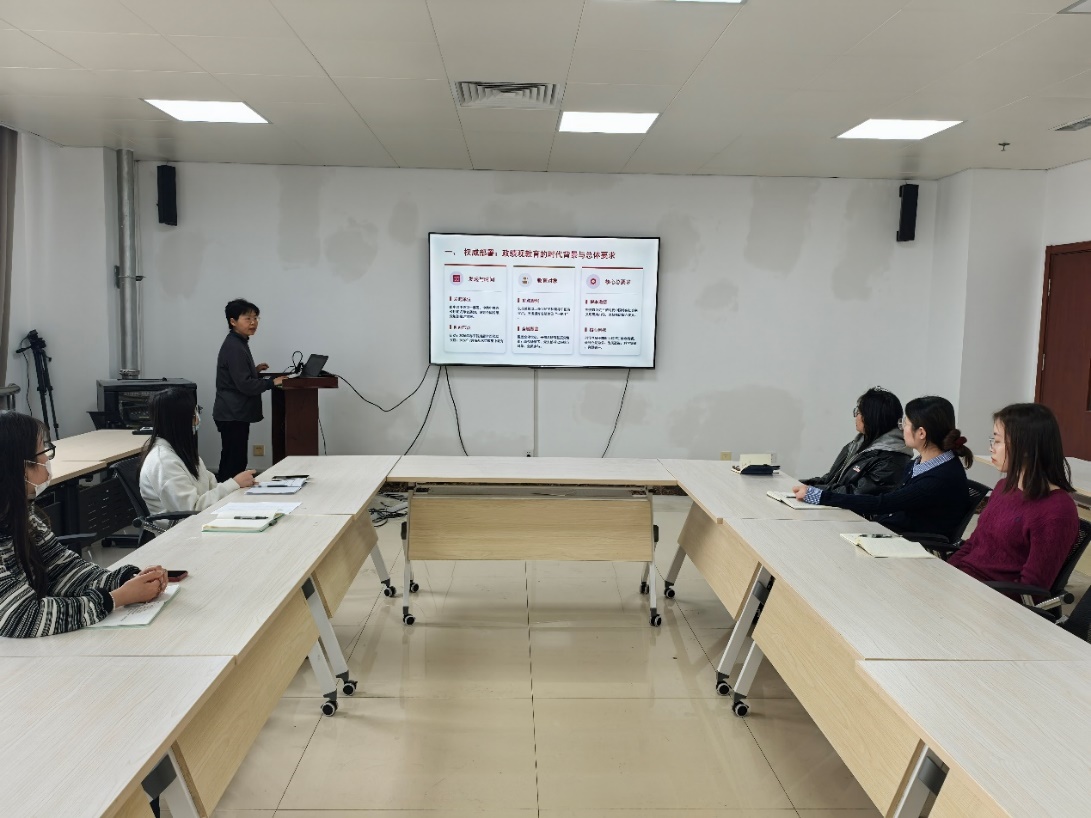 在医学教育综合楼B810举办树立和践行正确政绩观学习教育专题党课,学院党委副书记章敏主讲,学院学工人员和全体学生党支部书记参加学习。