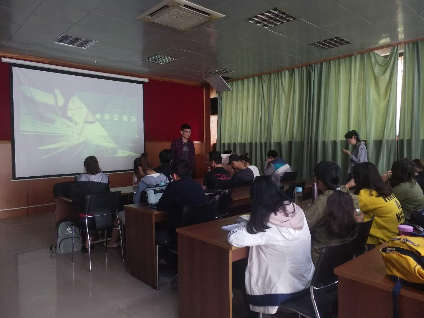 本次会议共分为两个环节。第一个环节最主要是2014级同学对自己考研之路的分享,包括向学弟学妹讲述自己的备考经验、介绍保研路上所需所做、申请国外名校的注意事项,以及对备考研究生详细地谈了自己的未来规划,并对学弟学妹提出了宝贵的建议。