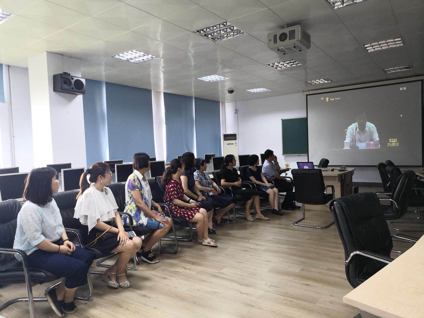 学院机关党支部、教工第三党支部和教工第五党支部的党员在博雅楼502集体收看,学院其他党支部也结合各自实际,分别组织党员进行了集中收看学习。