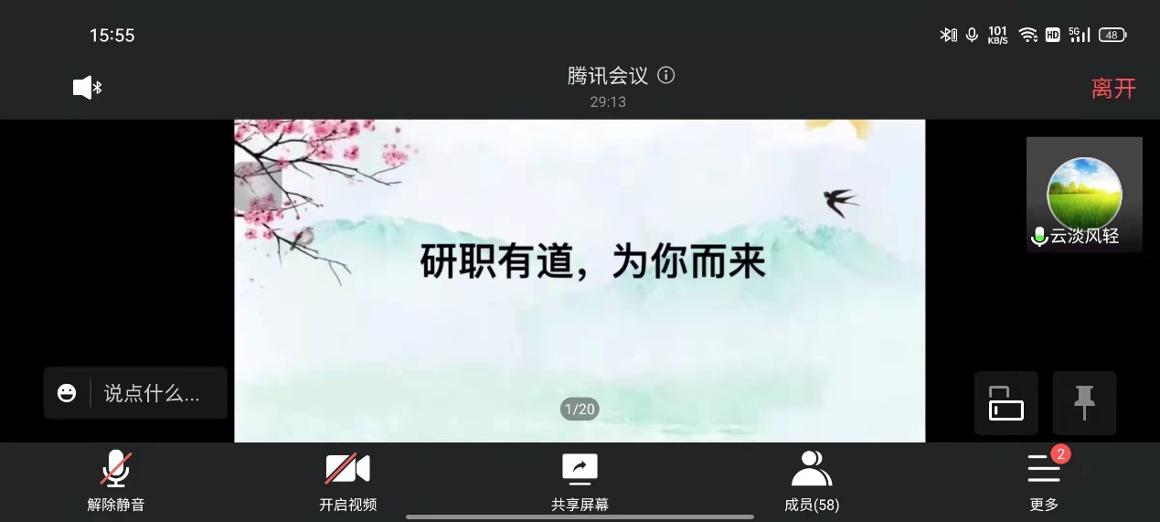 2019级特种医学学生,成功考取中山大学的博士研究生,她在分享考博经验时提出了以下建议:1、提前注意考试时间、报考要求和报考导师的研究方向;2、在当今考博竞争压力比较大的形势下,要提前备好简历尽快联系导师3、学会选择和取舍,合理安排时间。最后,她向大家介绍了考博复试内容,分为四个部分:自我介绍-专业英语—专业知识素养—PPT汇报。