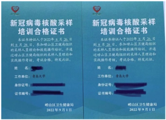 医学部关于招募核酸采样志愿者(首轮)的通知”,支部党员纷纷报名接受培训。9月3日,接到核酸检测通知,很快组建了志愿队和候补队。9月7日早8点半,志愿队准时在会议中心一楼采样点集合,开展全员核酸检测志愿服务工作。首先,按照培训要求的一级防护标准穿隔离衣、戴手套、戴口罩、戴帽子。然后熟悉流程。接下来分组,第一组老师和学生志愿者们一起,在入门处分流检测人群到五个队伍,义务提供口罩给佩戴不合格的受检者,第二组老师和学生志愿者在出口处负责信息登记、管理受检者出检方向、为登记员们补充并整理咽拭子和手消等耗材用品。下午4点半,志愿队统一按照一级防护用品穿脱流程结束工作。
