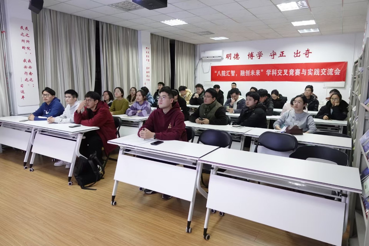 、计算机科学技术学院、数学与统计学院、电子信息学院、机电工程学院、经济学院、纺织服装学院八院研究生会以及研究生创新实践协会联合举办“融合智慧,共赢未来”学科交叉竞赛与实践交流会。会议于12月17日晚在行思楼303会议室顺利举办。