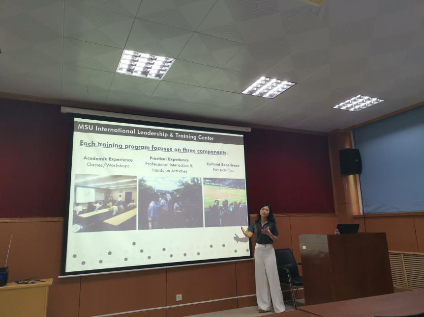 老师们对MSU的生活环境、学习氛围以及学生在MSU学习的内容向同学们作介绍,希望同学们在MSU学习期间,能珍惜学习机会,充分利用优秀的学习资源和师资力量,学习先进的科研方法,在认真完成自己的课业学习之余,积极融入美国校园,领略不同文化,学会更好的认识和理解社会。