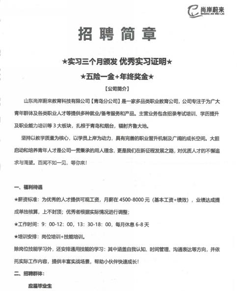 【招聘单位】:山东尚岸未来教育科技有限公司