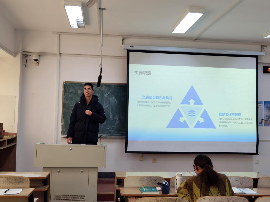 活动现场的气氛热烈而有序,每位同学都怀着对未来职业的憧憬与探索精神,精心准备并详细介绍了自己的生涯访谈人物。结合制作精良的 PPT,同学们以图文并茂的形式生动展示了访谈的精彩内容与深刻感悟,带领台下的老师和同学们深入了解了各行各业的真实工作状态、职业发展路径以及所需技能与素养。教师、科技工作者、自营企业家、企业高管,同学们的分享涉及到了社会工作的方方面面。