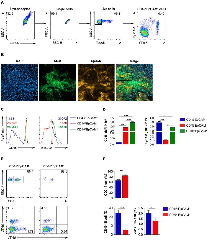 在人类癌症中,肺癌的死亡率最高,并且大部分死亡是由转移性扩散引起的。肿瘤微环境在抑制肿瘤细胞的免疫监视和消除中起着重要作用。有研究报道肺癌等癌症患者的肿瘤组织中存在CD45+EpCAM+细胞,但关于这群细胞形成的原因及其在癌症生物学中的功能仍不清楚。本研究中,我们分析了25个肺癌肿瘤样本,证实了肺癌肿瘤组织中CD45+EpCAM+细胞存在。与CD45+EpCAM-细胞相比较,CD45+EpCAM+细胞凋亡增加。利用HCC827细胞来源的外泌体与PBMC共培养后,PBMC中出现CD45+EpCAM+细胞,并且其凋亡增加。进一步分析表明,HCC827细胞来源的外泌体中microRNA会改PBMC中CD45+EpCAM+细胞的基因表达谱,引起基因TP53表达升高,促进了该群细胞的凋亡。综上,该研究阐明了肺癌肿瘤中CD45+EpCAM+细胞的形成原因及其凋亡的机制,为肺癌的临床治疗提供了新的思路与理论基础。