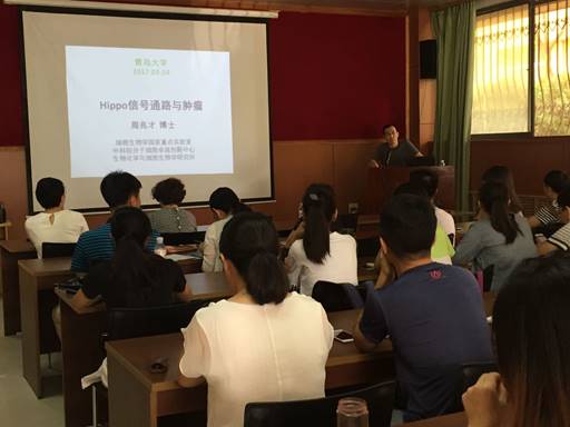 此次学术报告,周教授为大家介绍了其课题组最新的研究进展和研究经验。近年来他们主要研究了Hippo等信号通路调控肿瘤发生及免疫应答的机制与功能,并取得了一系列重要突破。他们发现了多个可用于胃癌、结肠癌等恶性肿瘤以及感染性疾病的诊断标记物和潜在药物。报告结束后,多位老师和同学积极进行提问、交流和讨论。整个会议学术氛围良好。