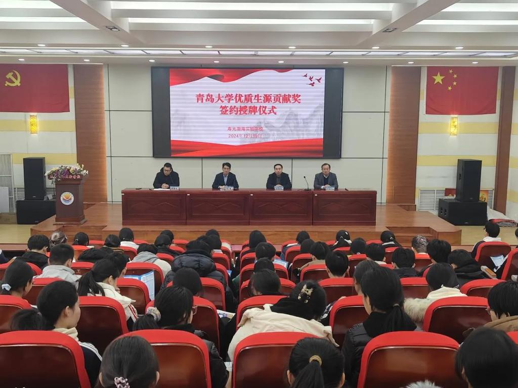 活动中,亓慧代表学校与寿光渤海实验学校党委副书记王成忠签约并举行“青岛大学优质生源基地”授牌仪式。李尚勇作招生宣讲报告,他详细介绍了我校基本概况、师资队伍、科研成果和招生录取情况,并对基础医学院华大基因创新实验班进行详细解读。招生拓展团队就招生热点问题和同学们开展了深入的互动交流,不仅充分展示了我校教育资源和优势,也为即将面临高考的学生提供了宝贵的升学指导。