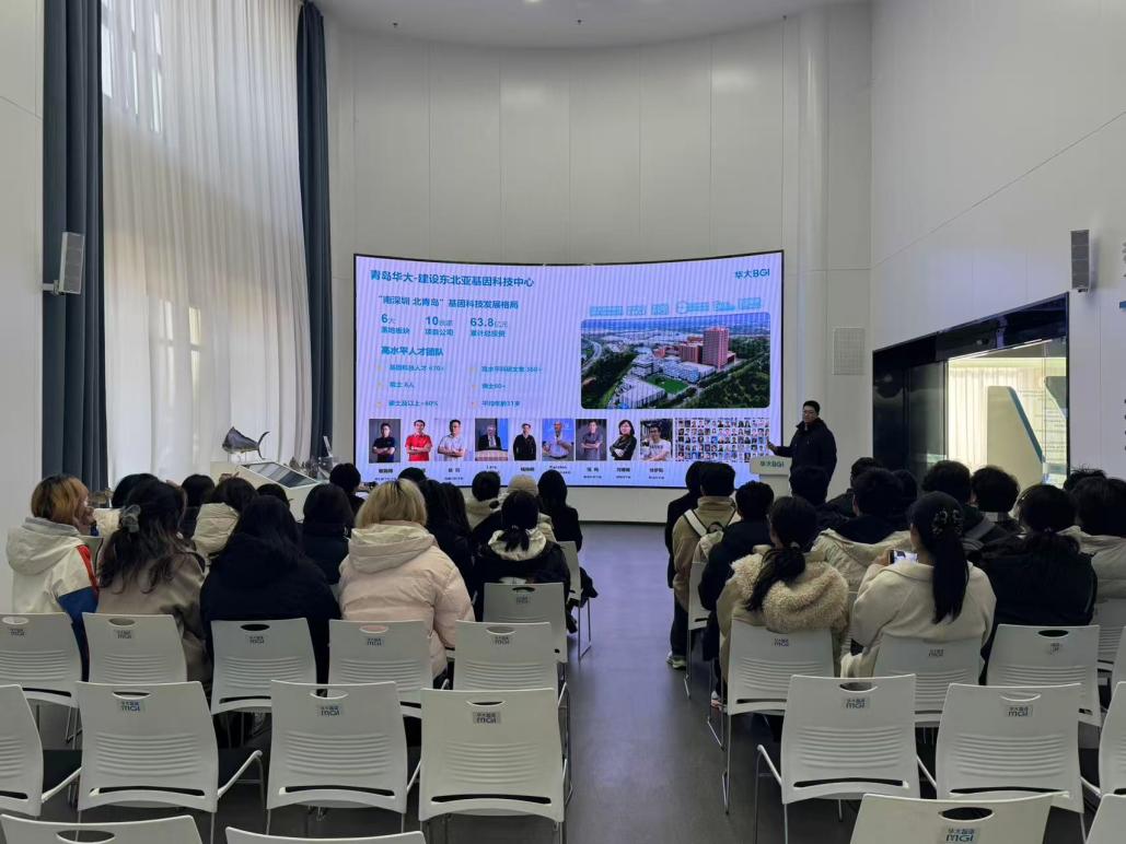 在座谈交流会上,双方就华大基因创新实验班的培养模式、课程优化、实践教学体系构建、创新能力培养路径、双导师制的深化实施以及实习实训基地建设等关键议题展开深入探讨。同时,围绕学科前沿动态、科研项目合作、产学研协同创新等方向进行交流,并就未来进一步深化校企合作、打造人才培养与科研创新共同体达成初步共识,为持续提升校企合作育人质量奠定坚实基础。青岛华大基因研究院赵莹老师详细介绍了研究院在基因组学领域的最新研究成果以及重点研究方向。近年来,研究院在海洋生物基因组学、疾病基因组学等多个前沿领域取得了一系列突破性成果,为生命科学研究提供了重要的理论支撑和技术支持。此外,研究院还积极发起并参与多项国际大科学计划,如“万种软体动物基因组”计划,不断提升我国在生命科学领域的国际影响力。