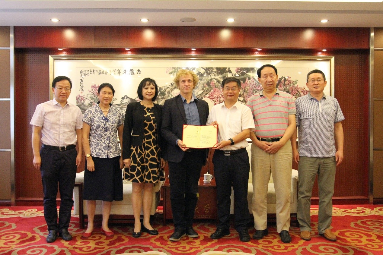 名誉教授”聘书。颁发仪式后,Josef Penninger在博雅楼103位为男同性恋av