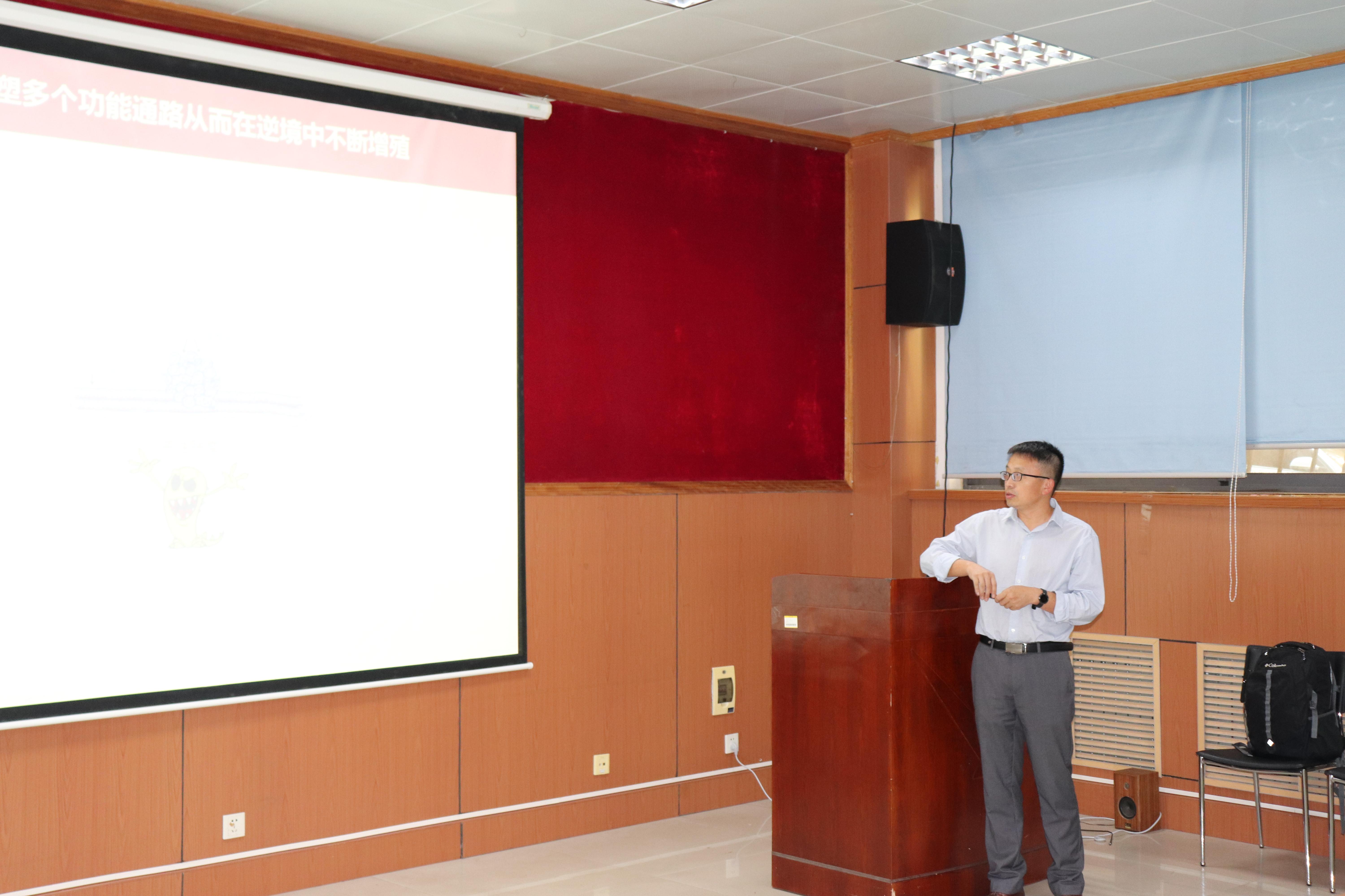 作了题为“细胞分裂调控与肿瘤的发展和治疗”的精彩报告。会议由学院院长王建勋主持。