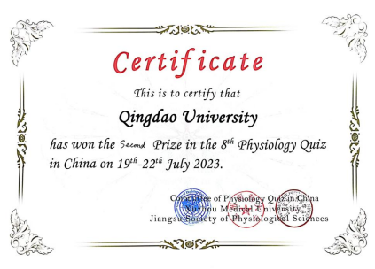 代表队荣获团体二等奖。生理学课程组王俊老师和陈曦老师获优秀指导教师二等奖。