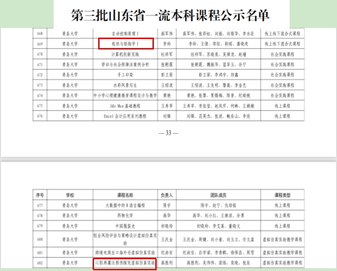 共获批3门国家级一流课程,10门山东省一流课程,另有4门课程获山东省教育厅推荐参评第三批国家级一流课程。