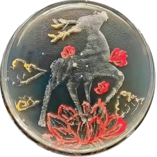 初次组织参加类似比赛,师生均缺乏经验,困难重重。为了抓住平皿上的那一抹美,同学们牺牲课余及节假日,在指导老师的陪伴下,边学习边创作,不断尝试不同菌株的培养条件,研究其色素、菌落特征,练习手法和技巧。经过师生的共同努力冲击决赛,最终2021级临床医学8班蔡淑文、唐毅云同学的作品《一鹿生花》获得团体组二等奖,2021级临床医学5班孙玉歆、戴玮同学的作品《京剧兔》获得团体组优秀奖。