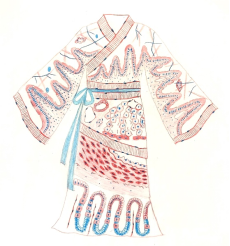 作品说明:在中国传统文化中,服饰一直扮演着重要的角色,其中的曲裾袍,原称绕襟袍,是我国服饰文化中重要的一部分。曲裾袍流行于先秦至汉代,衣长曳地,行不露足,具有含蓄、儒雅的特征。在曲裾袍中,“曲”指的是弯曲的形状,体现出衣服设计的独特性和美感。这幅作品中,我将曲裾袍与各种组织细胞相互融合,希望形成一幅既具有传统韵味又充满现代气息的作品以展现中华传统服饰的魅力,并希望通过艺术的手法将科学的奥秘呈现给大家。 |