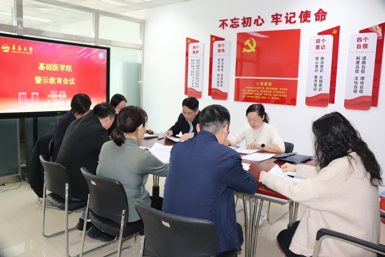 党委书记亓慧主持。亓慧书记首先传达了学校关于全面从严治党和师德师风建设的重要指示精神,并强调了警示教育在学院领导层中的特殊意义。作为学院发展的引领者和决策者,领导班子成员必须时刻保持清醒头脑,坚守廉洁自律底线,为全院教职工树立良好榜样。以习近平新时代中国特色社会主义思想为指引,贯彻党的重要会议精神,秉持创新、融合、提升理念,开启高质量发展新征程。在这一过程中,领导班子的纪律意识和作风建设至关重要。要深刻认识当前反腐败斗争形势的严峻性和复杂性,始终保持高压态势,坚决杜绝任何形式的腐败行为。