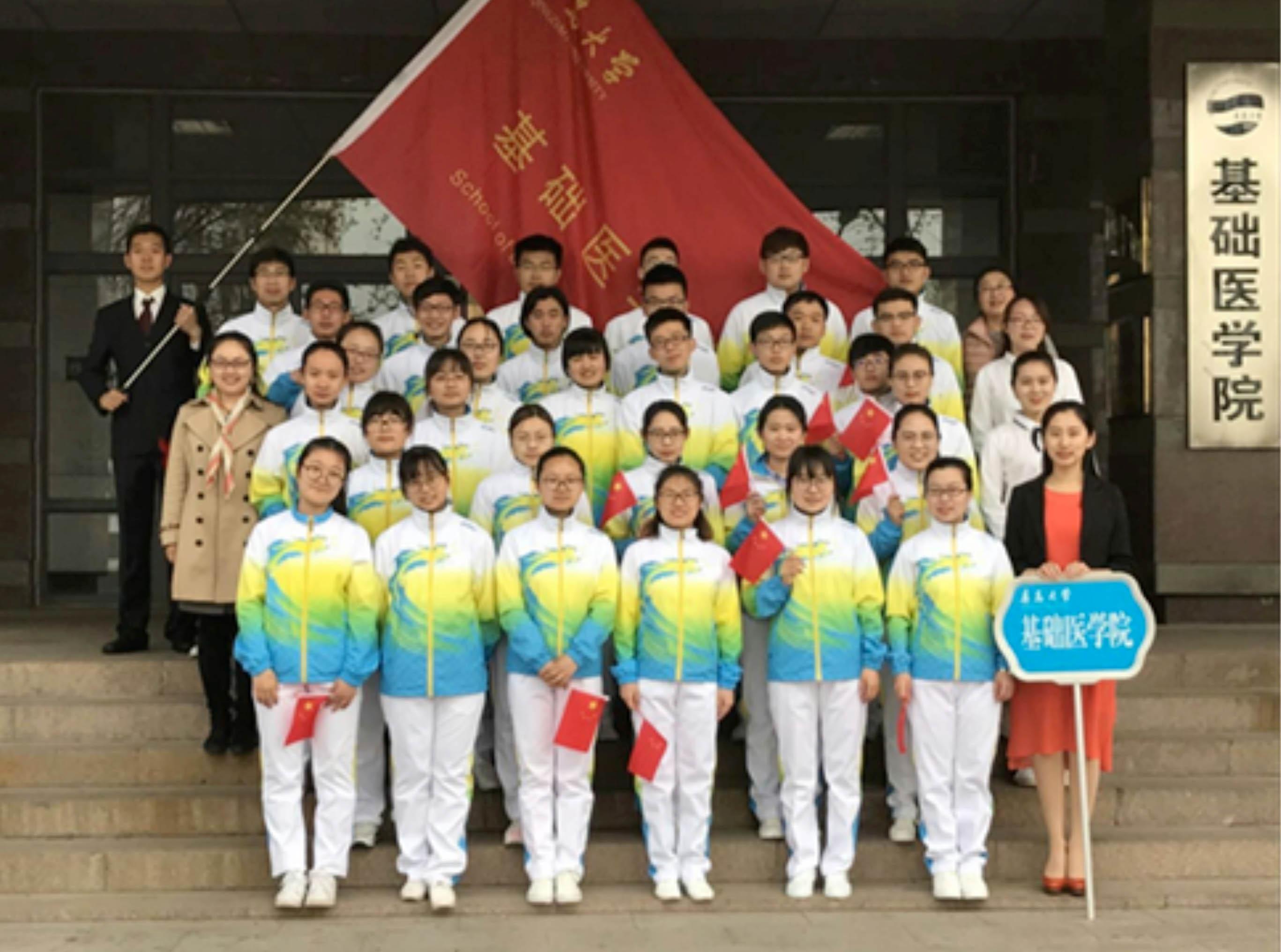 参加了本次运动会的开幕式。他们着装统一,青春昂扬,步伐整齐地走过主席台,他们手中挥舞着鲜艳的五星红旗, “基础医学,青春飞