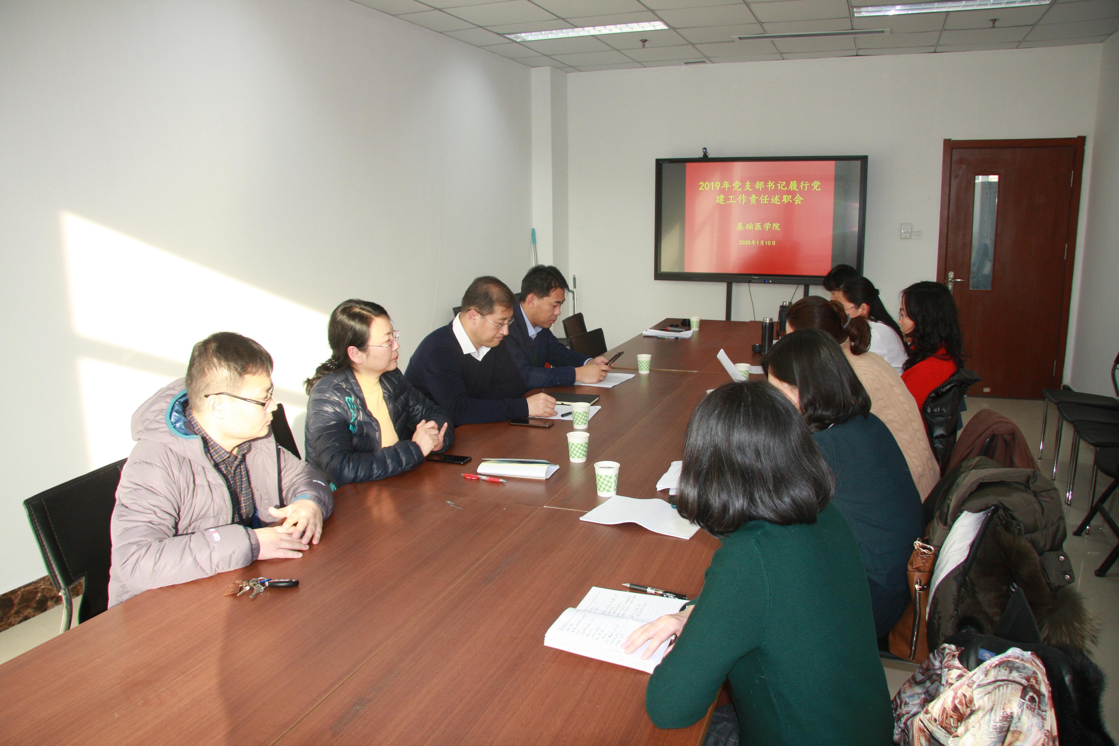 在浩园B617会议室召开2019年度党支部书记履行基层党建工作责任述职评议会。学院领导宋佐东、王建勋、陈文芳、马泽刚,学院党委委员、细胞与分子生物学实验室主任徐宏伟,各党支部书记参加会议。会议由学院党委书记宋佐东主持。