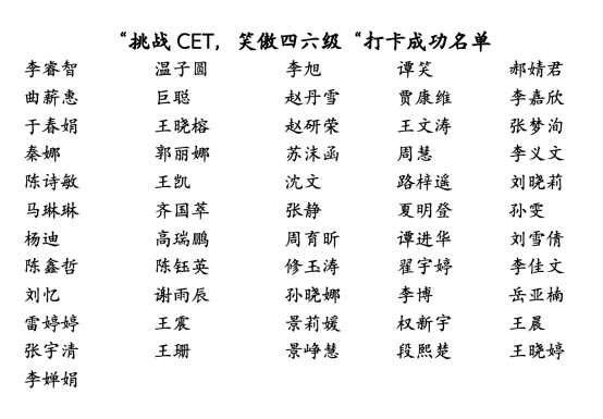 研究生会举办“挑战CET,笑傲四六级”英语单词打卡活动。