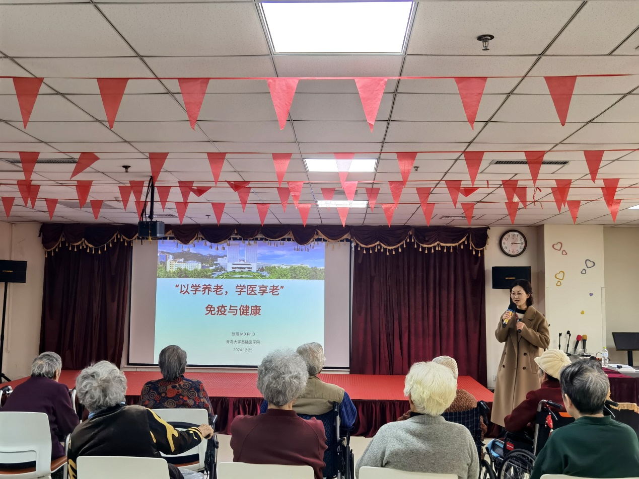 活动伊始,教工第一党支部书记张丽副教授聚焦免疫与健康主题,作“以学养老,学以享老”专题讲座。张老师用通俗易懂的语言为老人们揭开了免疫系统的神秘面纱,并细致讲解了如何通过科学的生活方式来增强免疫力,有效预防疾病。讲座过程中,老人们聚精会神,频频点头赞许,纷纷表示要将学到的健康知识融入到日常生活中,乐享健康晚年。