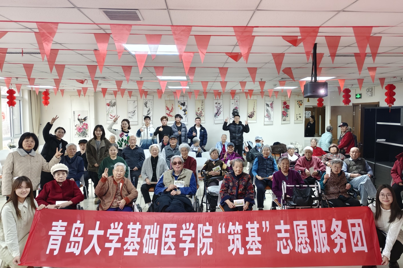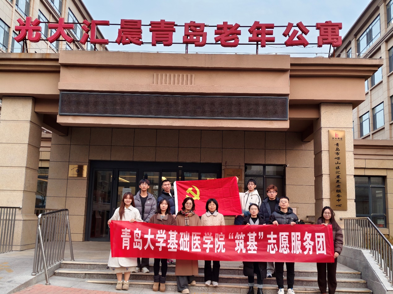“筑基”志愿服务团立足实际,精心筹备,于12月25日前往光大汇晨青岛老年公寓开展志愿服务活动,教工第一党支部和研究生党支部参加此次活动。活动旨在通过健康专题讲座、老人保健操教学与曲目演唱等多种形式,帮助老年人丰富精神文化生活,提升健康管理意识,开启“年轻态”新生活。