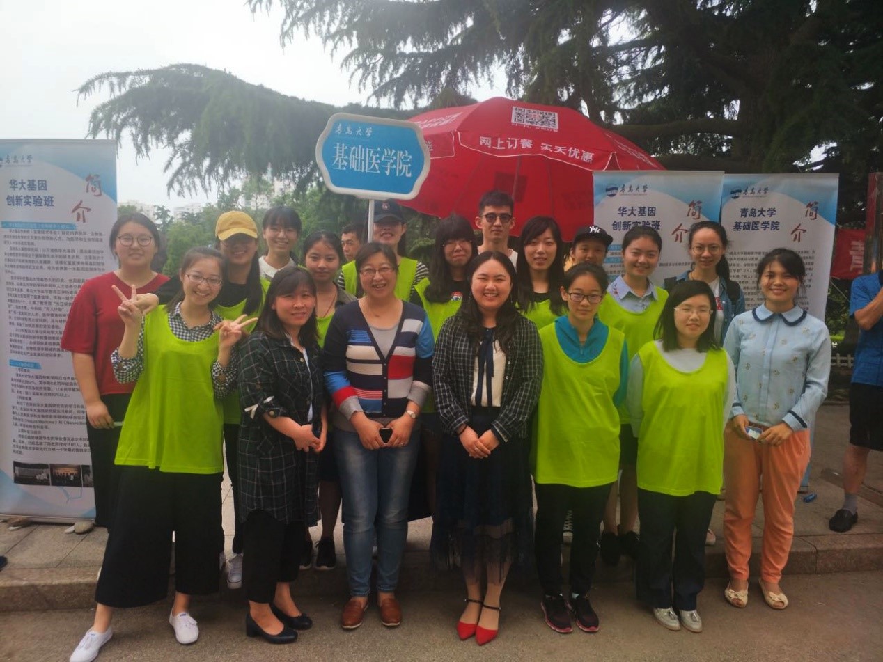 夏玉军副院长,戚昕副书记,辅导员孙老师以及华大基因创新学院的同学们,在博文楼前搭台展示,展现华大创新学院的教育成果和风采,吸引更多优秀的学子前来报考,并为前来咨询的考生和家长耐心各种问题。