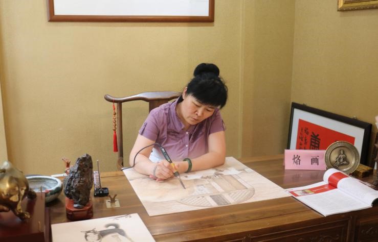 说到艺术传承问题,万老师表示,现在年轻人从事烙画行业的很少,万老师平时会参加一些比赛、举办一些展览来宣传烙画,或是在网络上宣传,通过团队合作来扩宽销路,由于目前高校没有这样的专业,万老师会到一些高校宣传,并且自己会教给家中小辈烙画,并且收了一些徒弟,希望把烙画这项艺术真正传承下去。